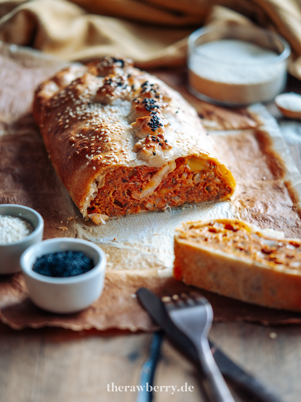 festliche Anlässe, Mittag- & Abendessen, Rezepte Einfacher veganer Hackbraten im Blätterteigmantel in nur 30 Minuten