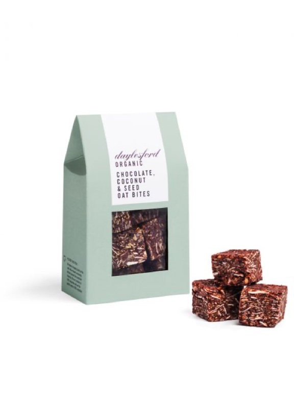 Oats, coconut flakes, linseeds and chia seeds smothered with creamy cashew butter and chocolate in bite-size energy boosters, perfect for a wholesome snack on the go. You can buys this product from Daylesford